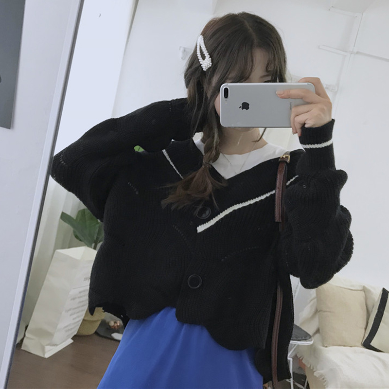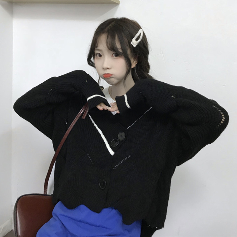 秋冬女裝2018新款韓版下擺不規則針織開衫時尚寬松鏤空毛衣短外套