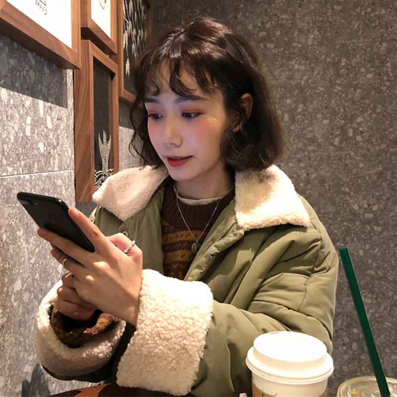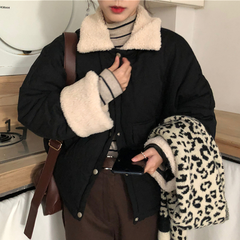 羊羔毛保暖棉服外套秋冬女裝2018新款韓版學院風寬松長袖棉襖棉衣