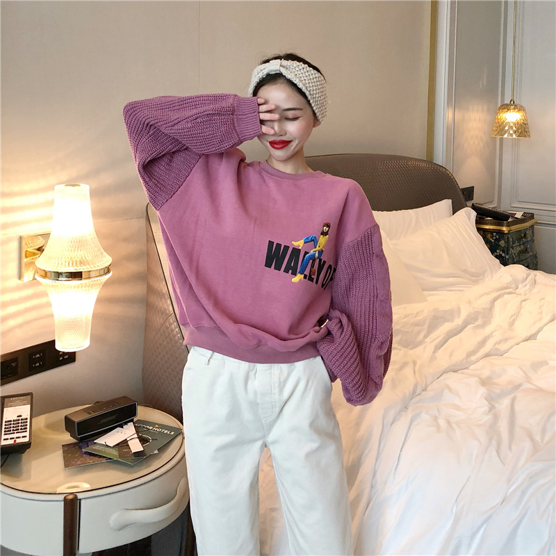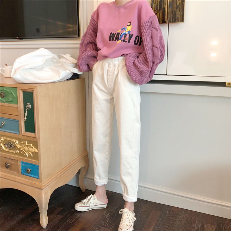 字母拼接針織燈籠袖衛衣女秋冬2018新款+高腰燈芯絨加絨蘿卜褲潮