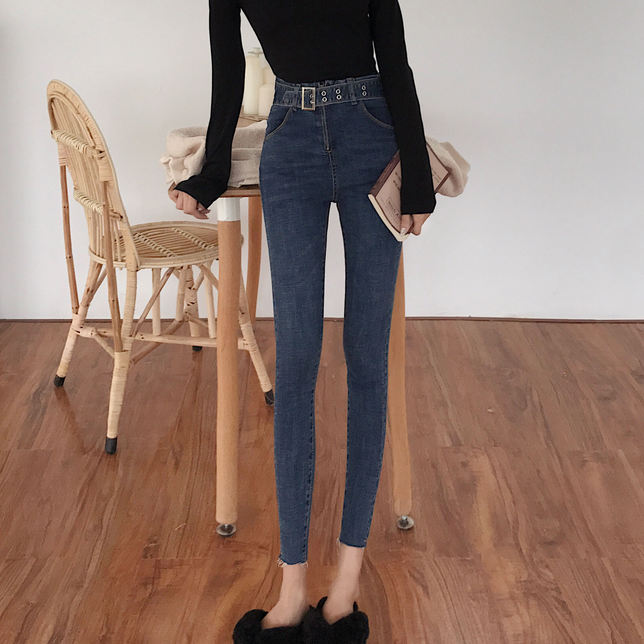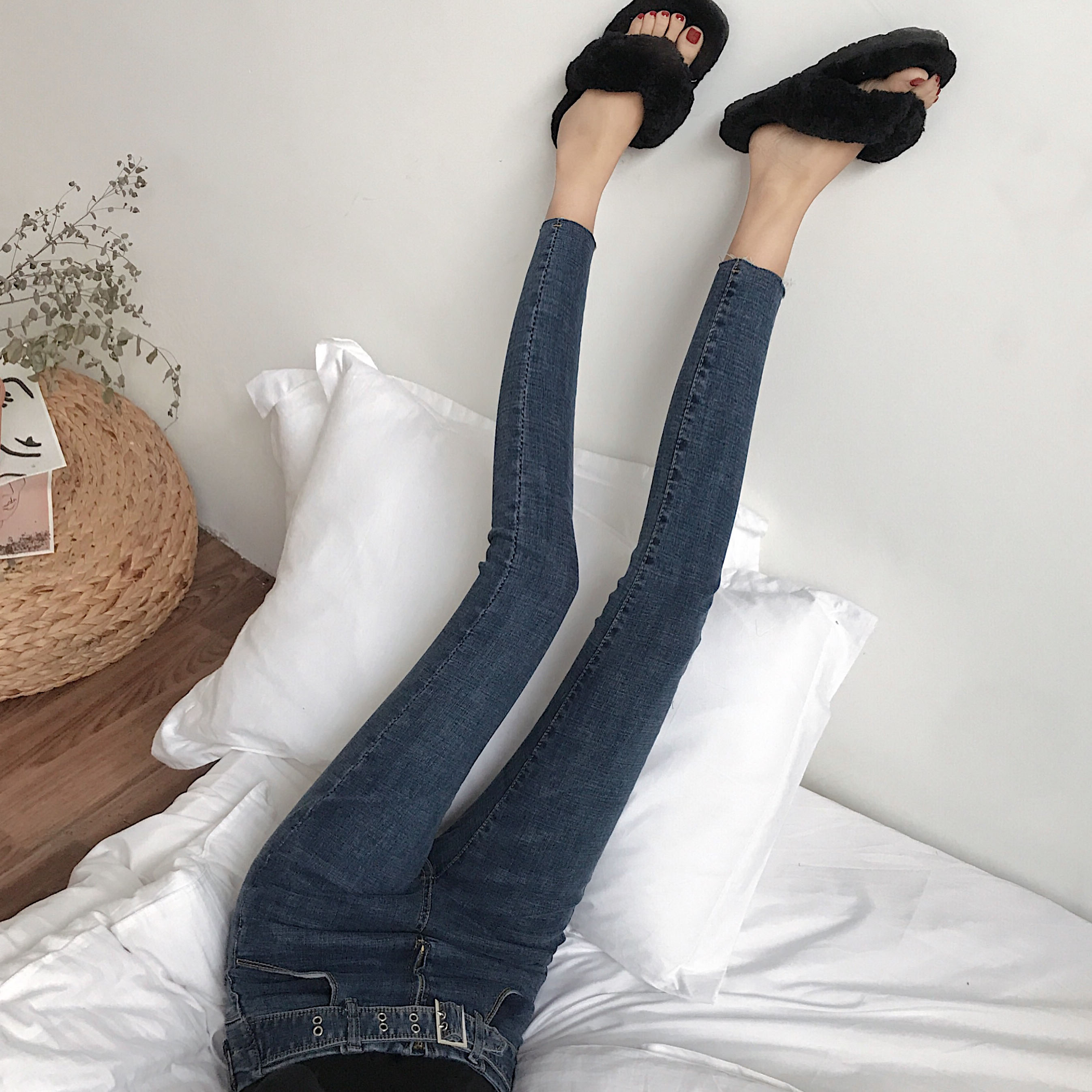 韓版chic顯瘦高腰牛仔褲女秋冬2018新款緊身彈力小腳鉛筆褲九分褲