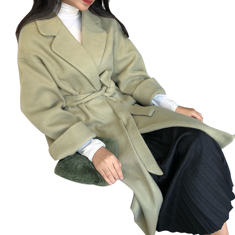 毛呢外套女秋冬大衣女新款2018韓版氣質中長款呢子大衣潮~帶腰帶