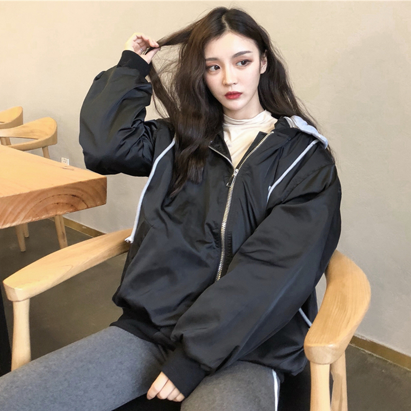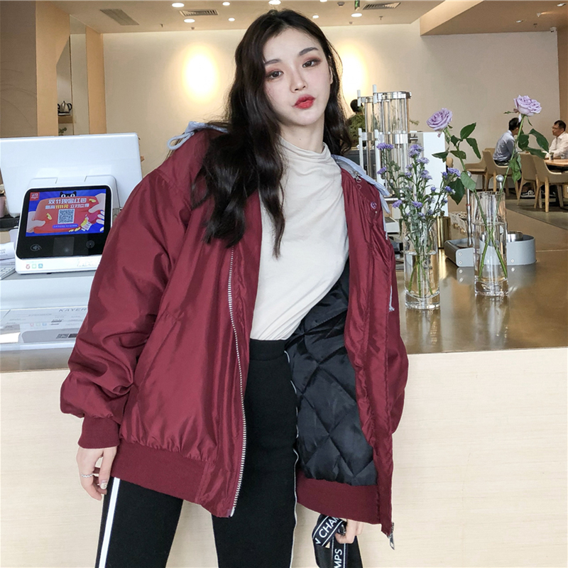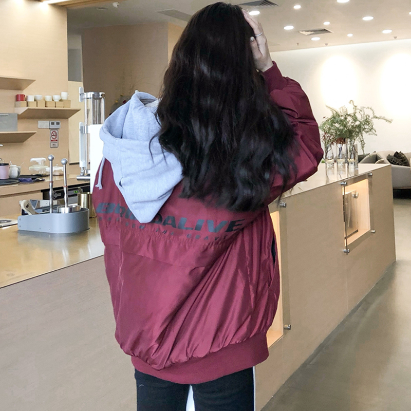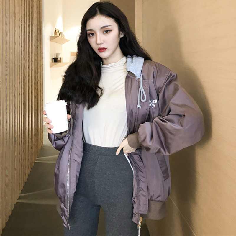 休閑連帽棉襖2018冬季女裝新款學生夾克假兩件棒球服字母時尚外套