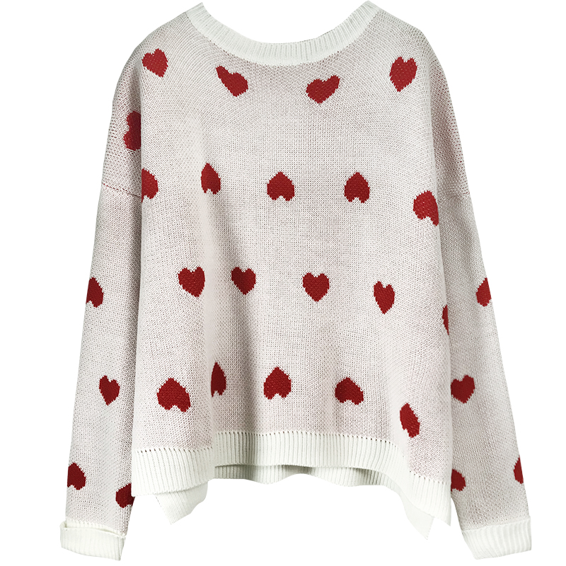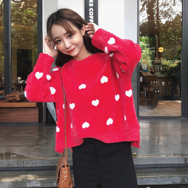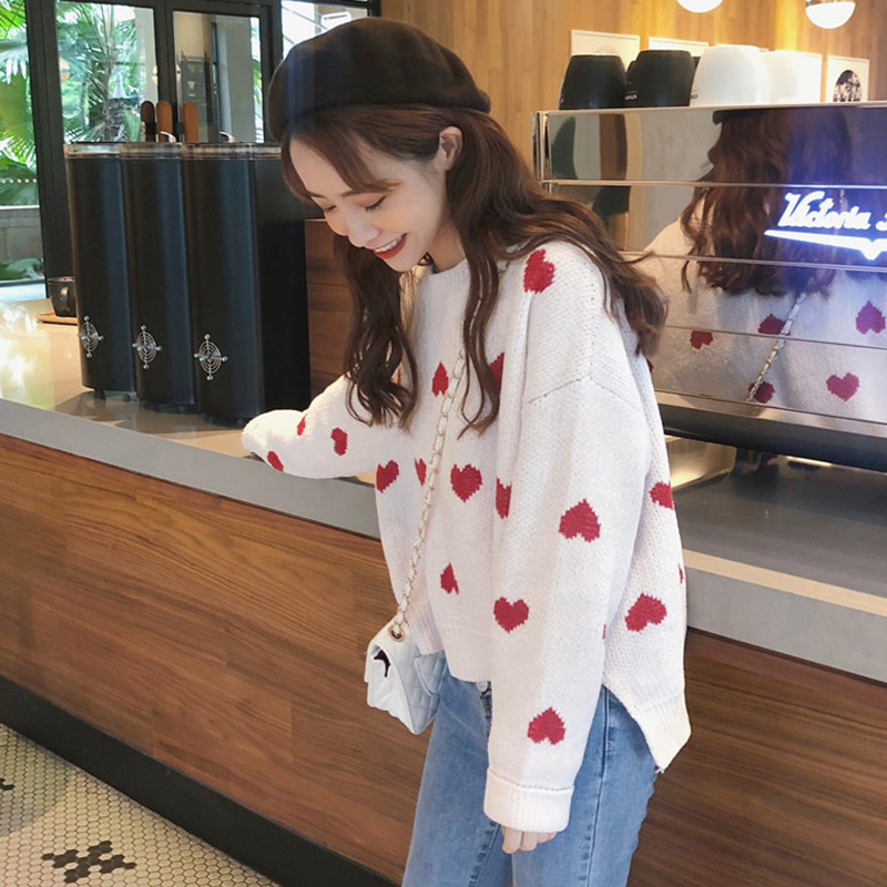 慵懶風套頭毛衣秋裝女2018新款學生寬松愛心長袖針織上衣打底衫潮
