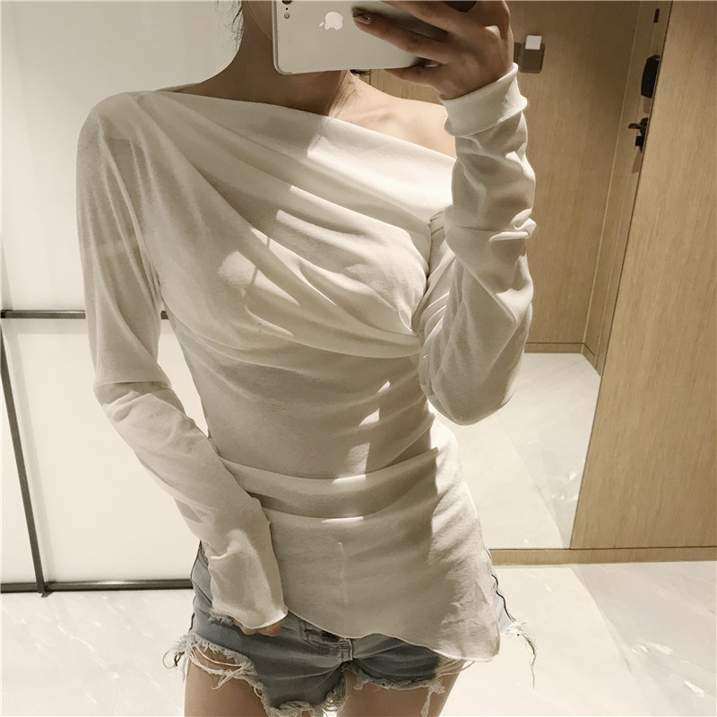 / 秋裝女2018新款百搭一字肩上衣小心機露肩長袖體恤漏肩內搭打底衫