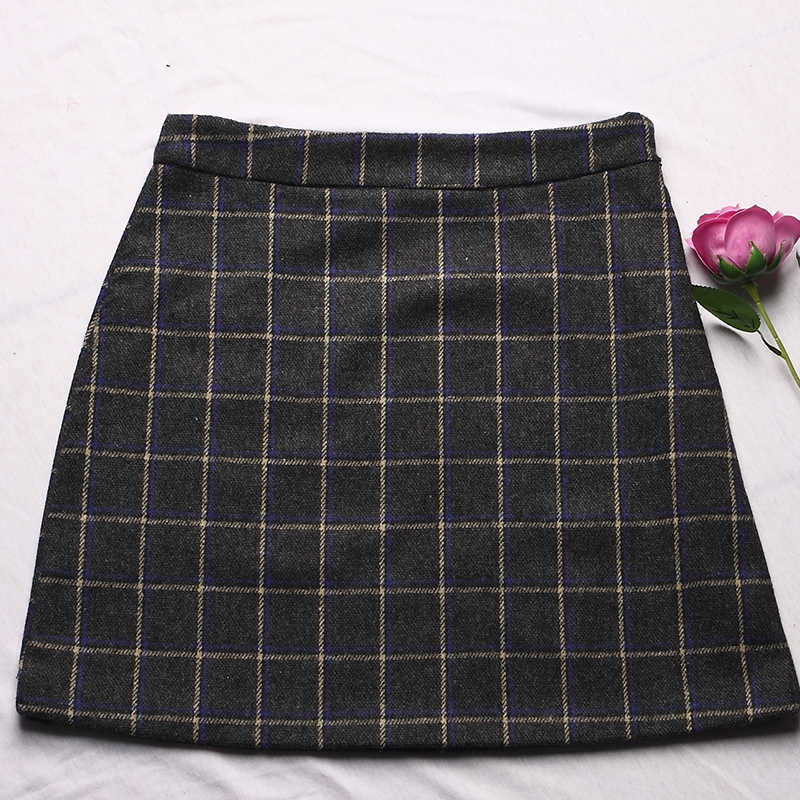 / 秋冬女裝韓版高腰毛呢格子短裙學生復古a字裙女百搭包臀半身裙潮