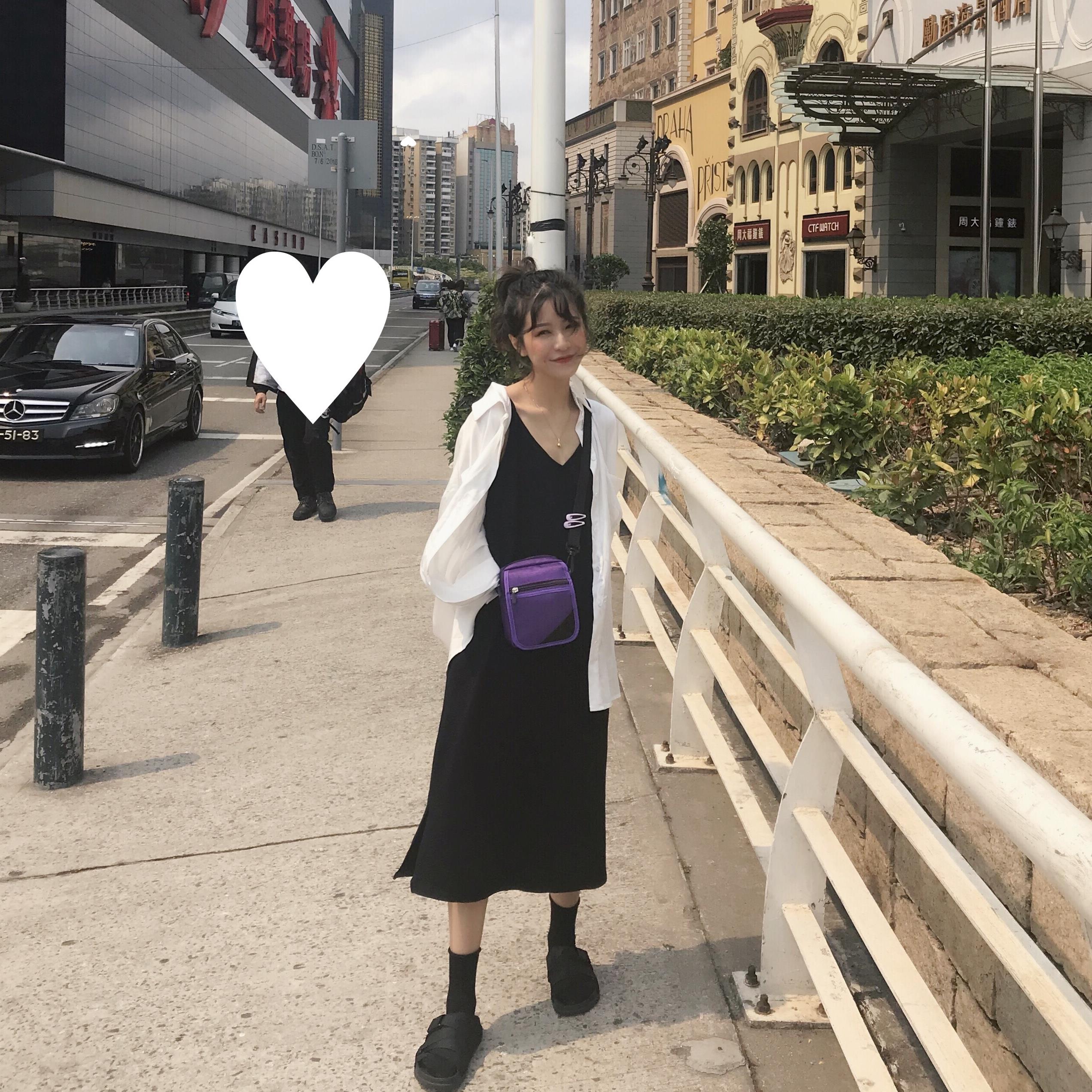 就是很簡單的一款吊帶裙 夏天可以單穿 春秋可以搭個外套啥的 很好看 內搭神器