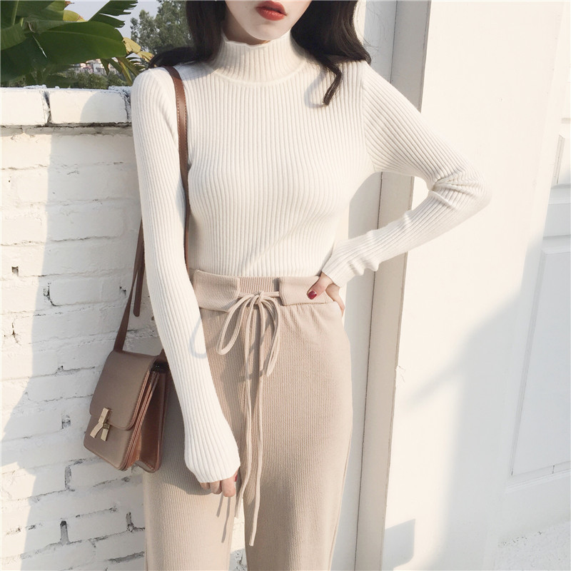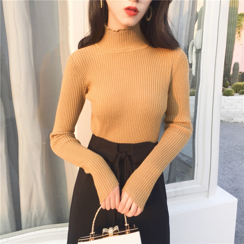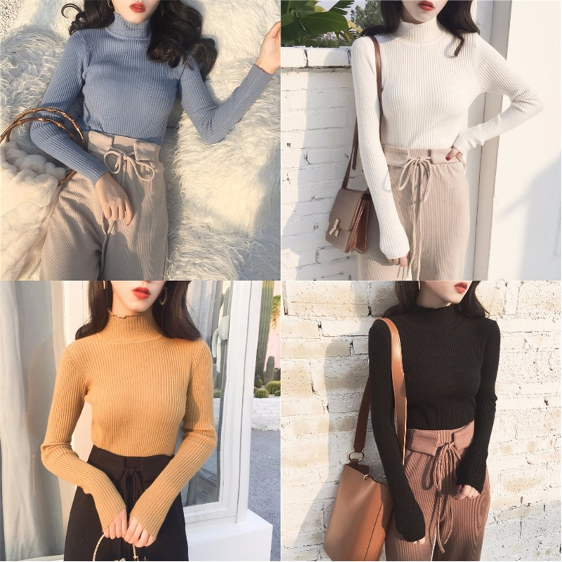 / 港味女裝上衣2018新款復古修身顯瘦百搭半高領純色長袖針織打底衫