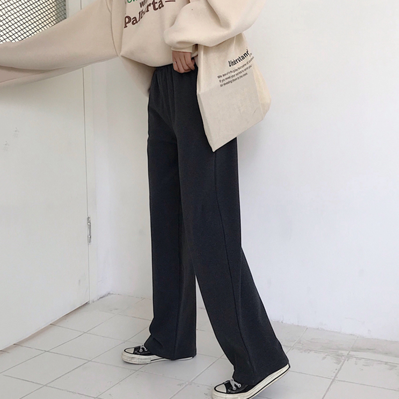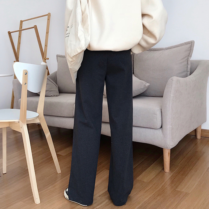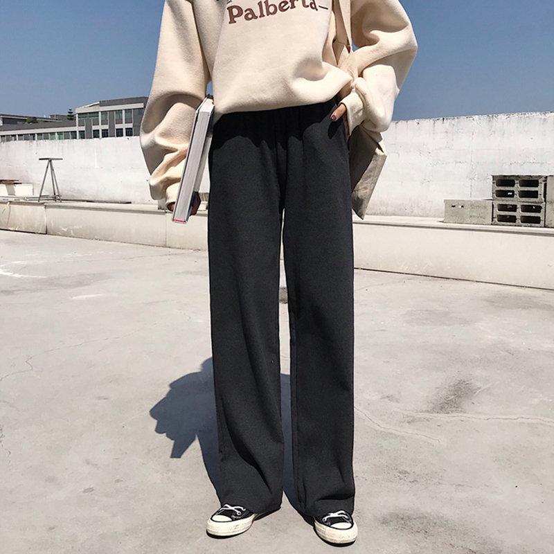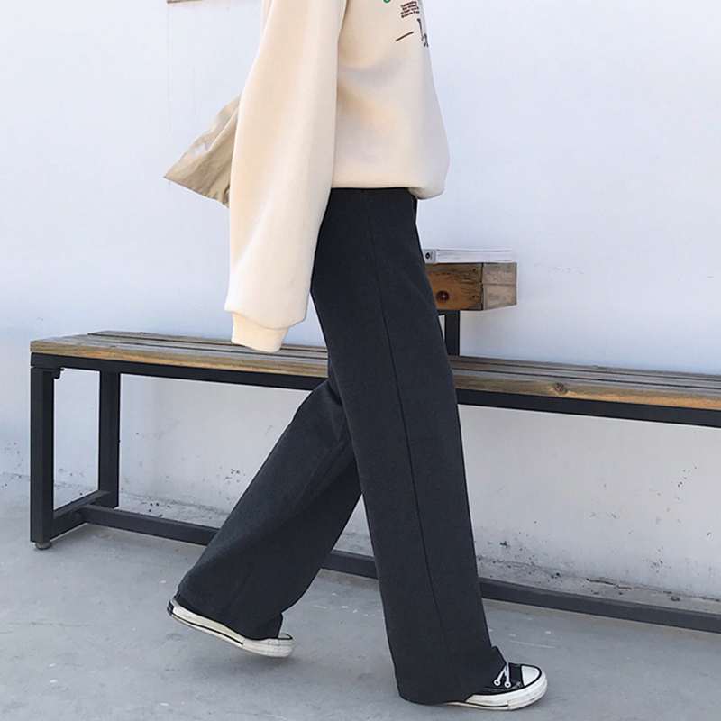 / 精神女生社會褲子秋冬裝2018新款高腰寬松闊腿褲休閑百搭直筒長褲