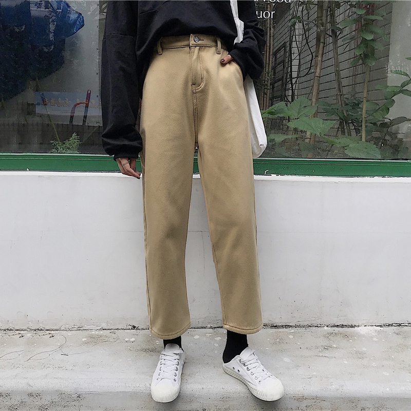 / 水洗加絨牛仔褲女冬裝2018新款韓版高腰顯瘦哈倫褲學生寬松九分褲