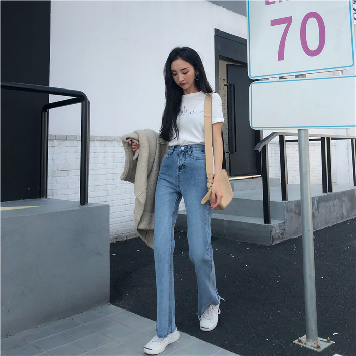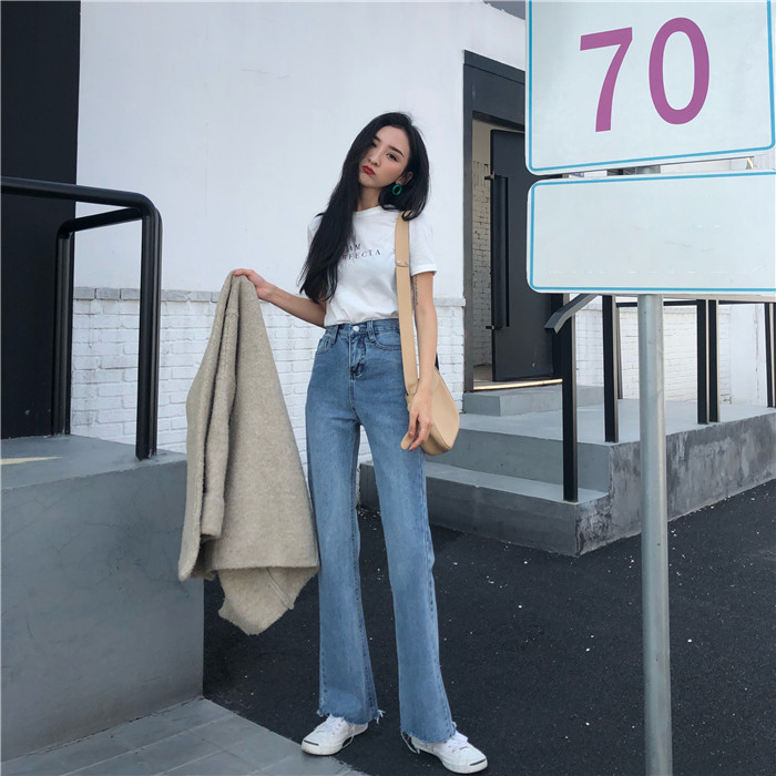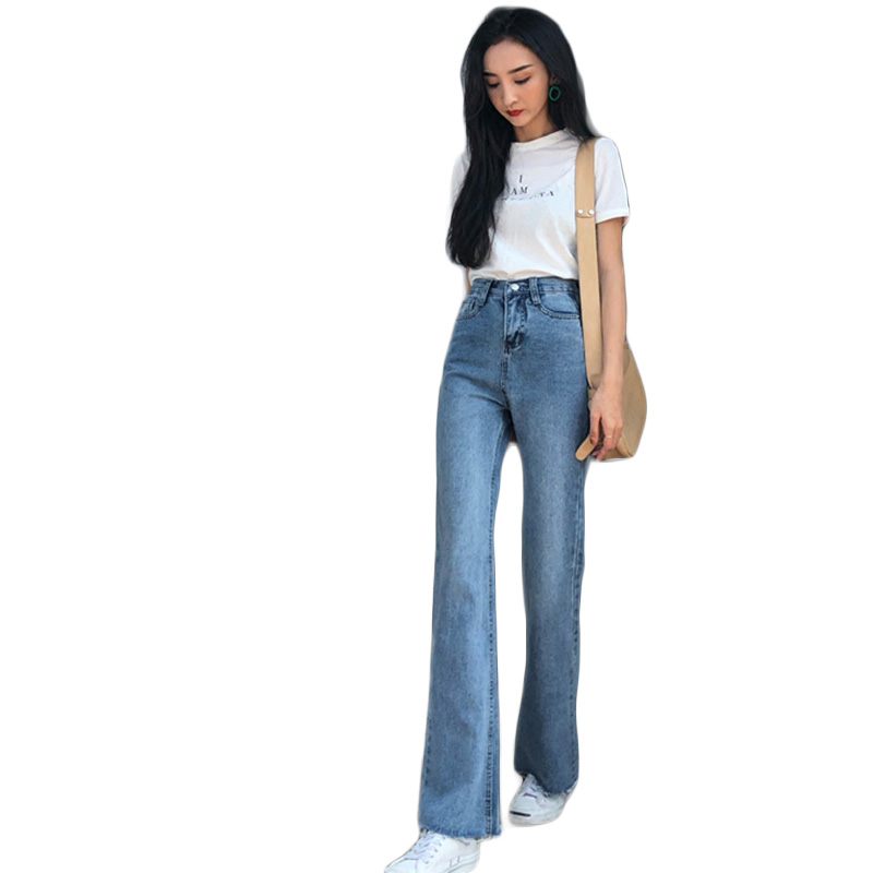 復古超高腰修身微喇叭顯高牛仔褲女春秋2018新款韓版顯瘦百搭長褲
