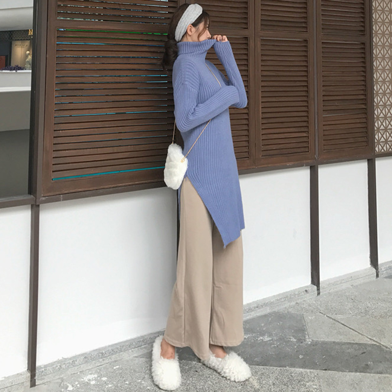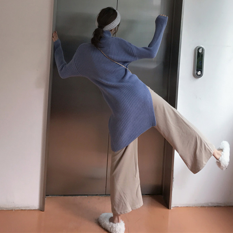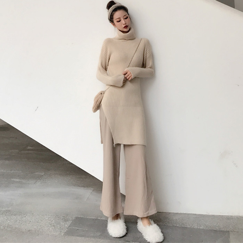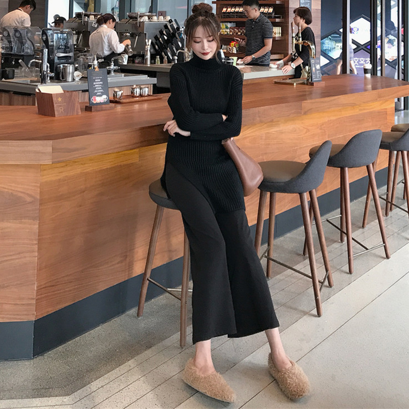 / 御姐套裝女秋冬新款慵懶高領針織外套開叉毛衣純色休閑闊腿九分褲
