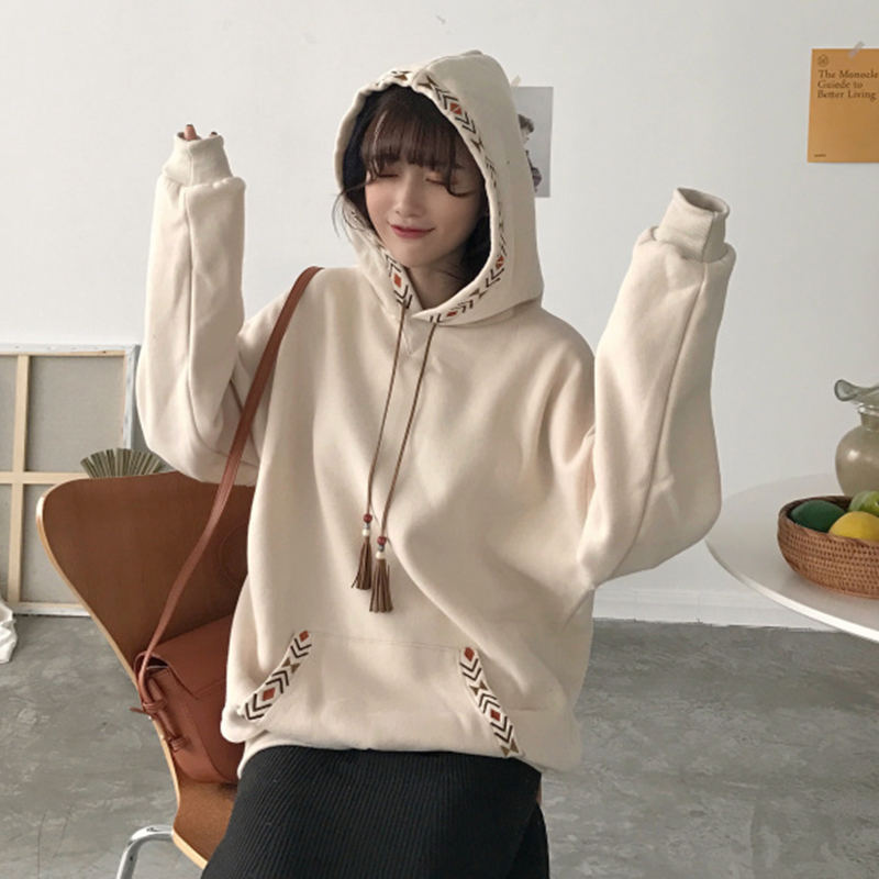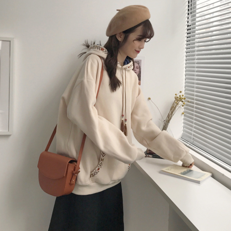秋冬女裝2018新款韓版寬松刺繡套頭連帽衛衣少女加厚長袖外套上衣