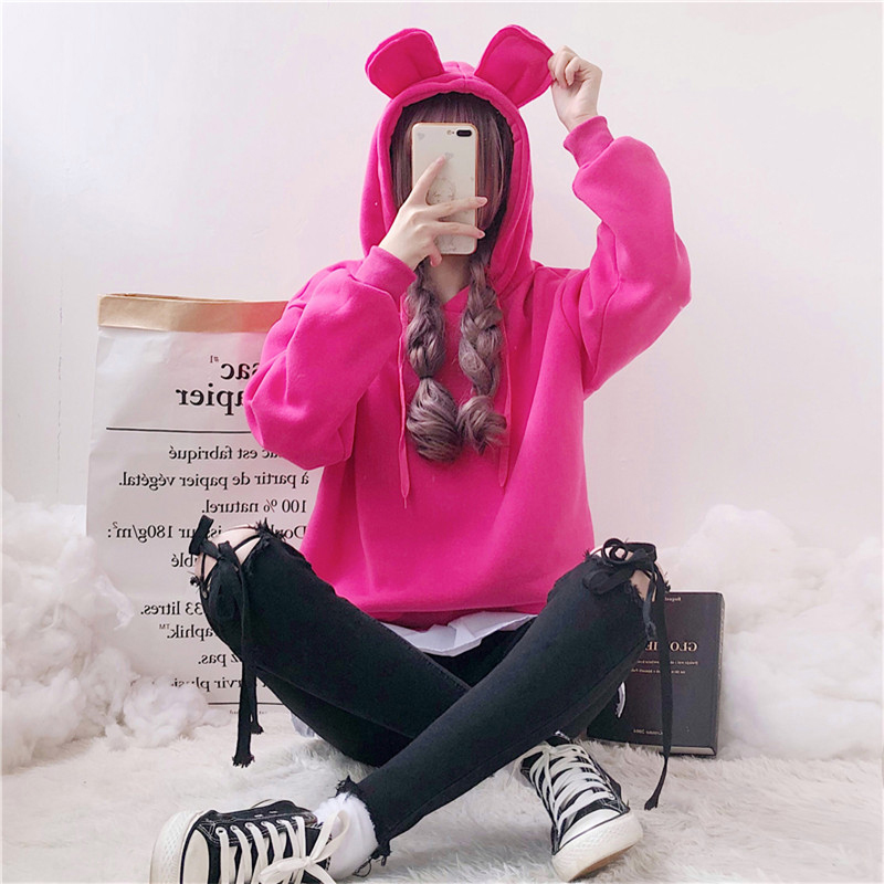 / 可愛少女假兩件拼接衛衣冬裝2018新款韓版中長款寬松休閑連帽外套