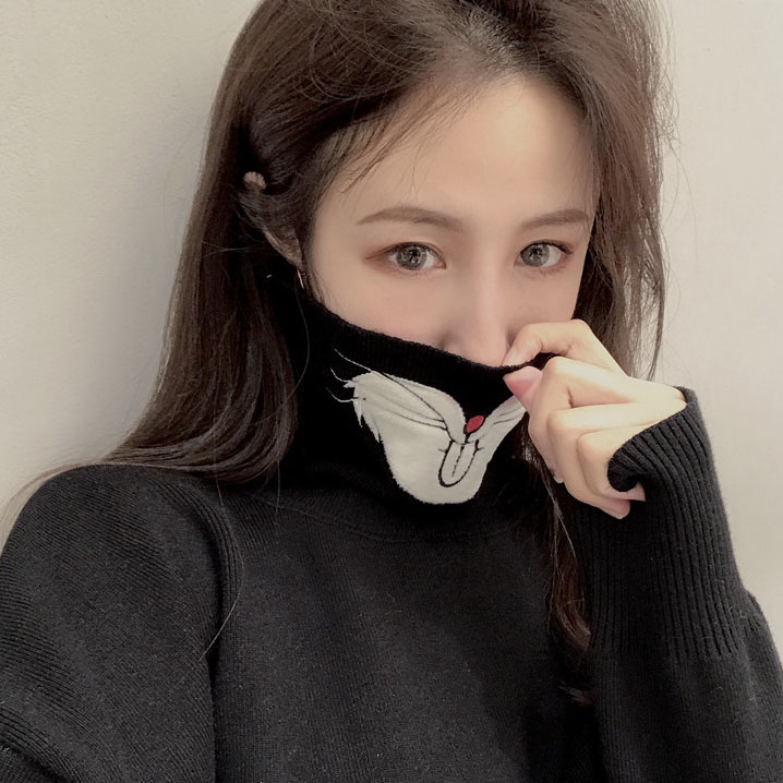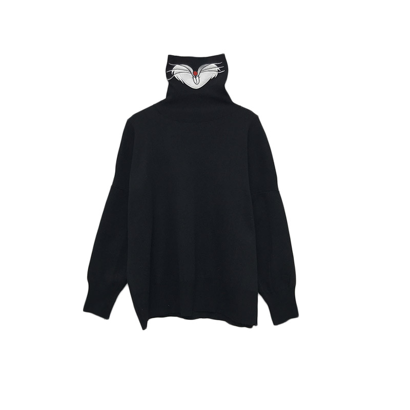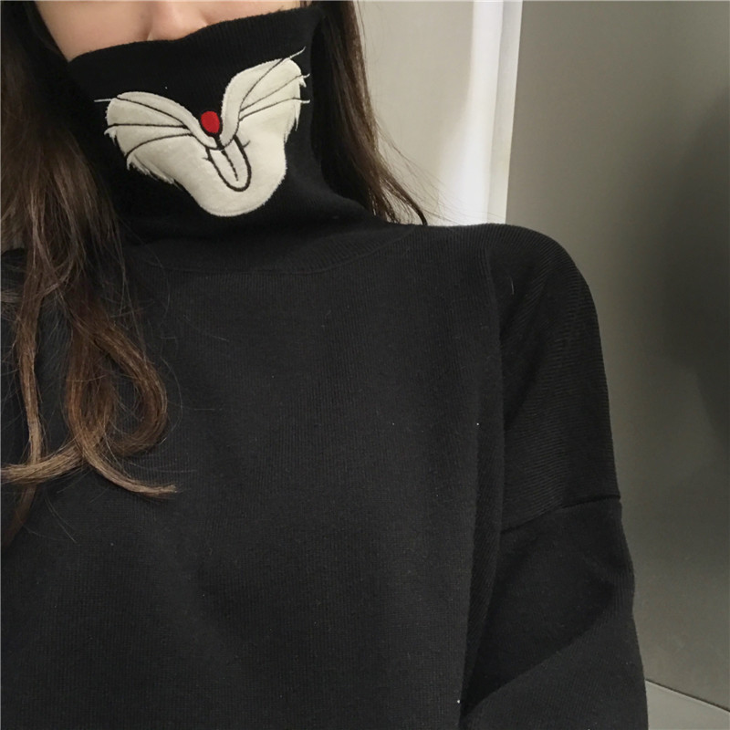 / 貓咪搞怪刺繡高領內搭基礎款針織衫毛衣女秋冬2018新款打底上衣潮