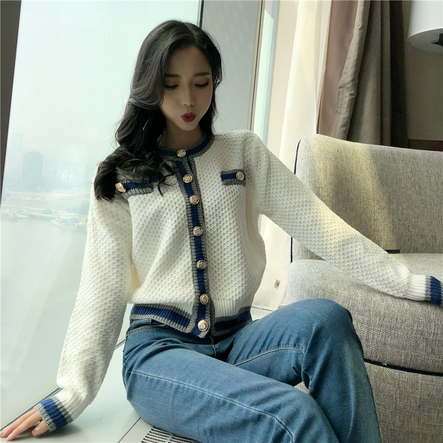 / chic早秋針織衫韓版小香風圓領珍珠扣百搭針織開衫慵懶風毛衣女潮