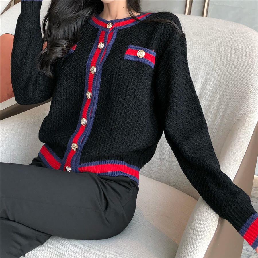 chic早秋針織衫韓版小香風圓領珍珠扣百搭針織開衫慵懶風毛衣女潮
