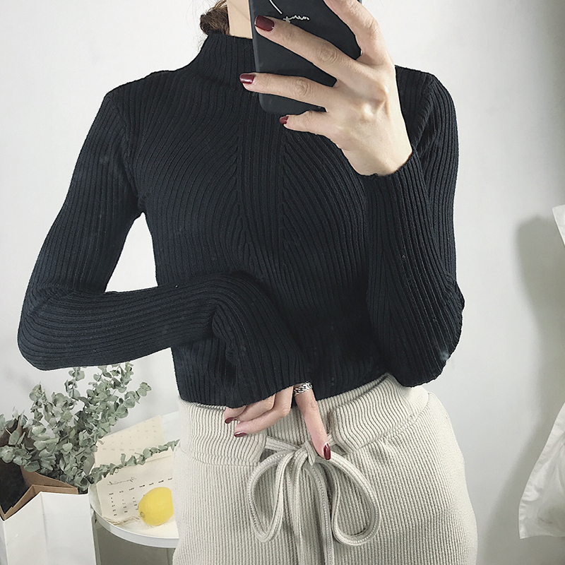 / 毛衣女2018新款秋裝半高領修身彈力打底衫長袖針織衫簡約純色上衣