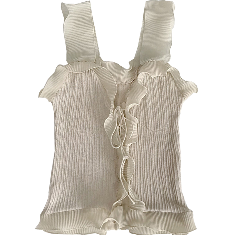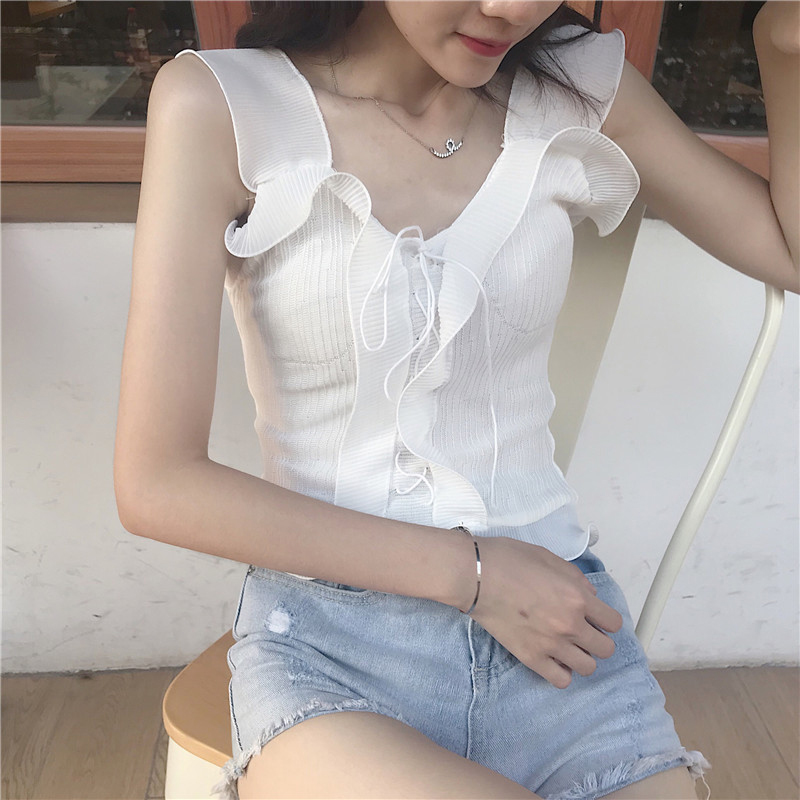 / 夏季新款女裝韓版短款木耳邊修身顯瘦針織吊帶復古百搭打底小背心